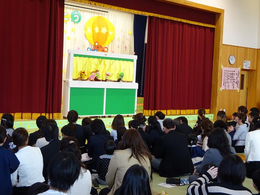大きな声で返事をしたり、元気に歌を歌って、新しいお友だちを迎えてくれた新年長・年中さん。