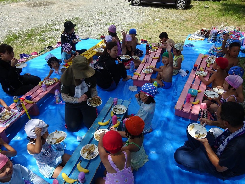 昨日のばら組さんに続き、今日はたんぽぽ組さんが川遊びに出掛けました。