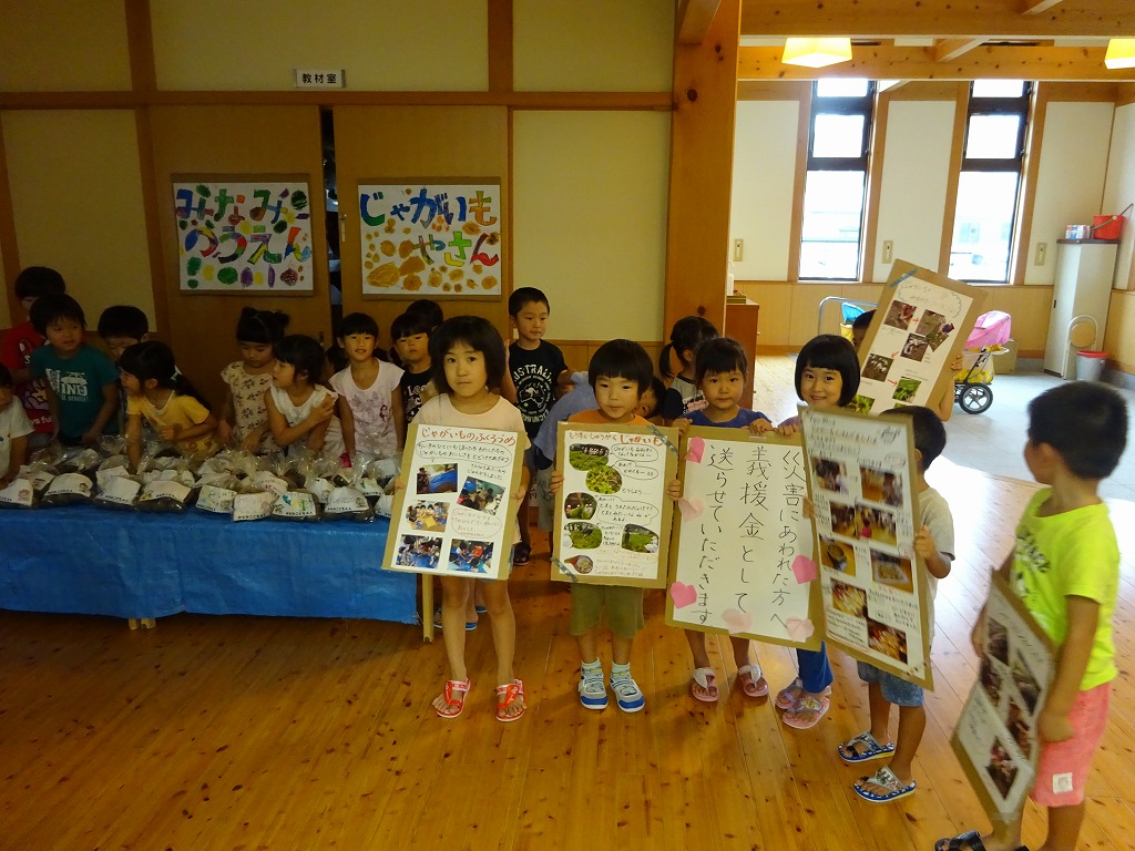 年長さんが天領朝市でのじゃがいも販売を予定していましたが、