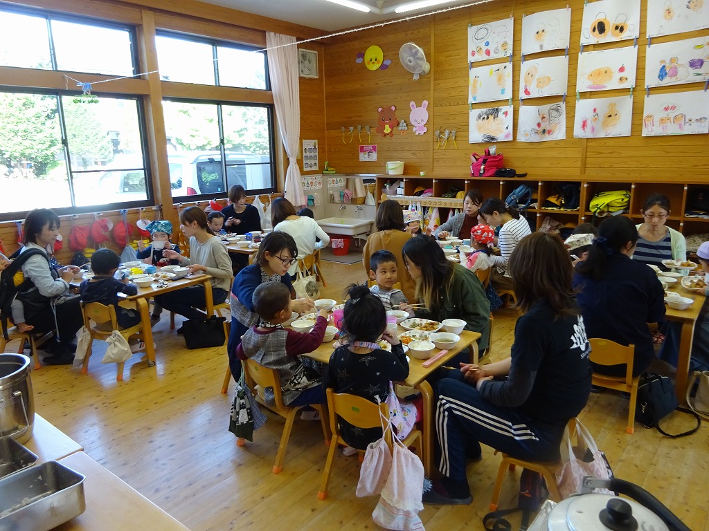 給食の時間には、箸を使ったりお皿を持って食べたりと、いつもより張り切っていた様子でした。 お家の方には、給食の前に栄養士から給食や食事についての話をさせていただきました。 今日のことをお家で話しながら、食事について考えるいい機会になればと思います。 お忙しい中、ご参加いただきありがとうございました。