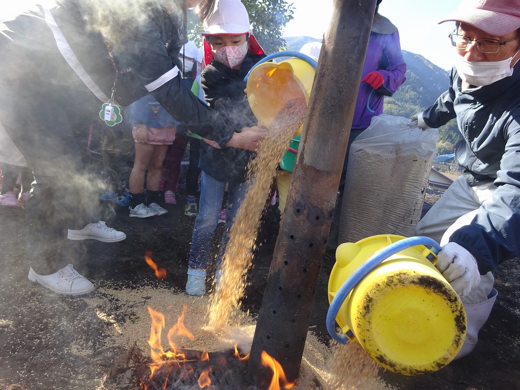 自分たちで包んだお芋を、自分たちの手でもみ殻の山に入れたりと、とても貴重な体験をすることができました。