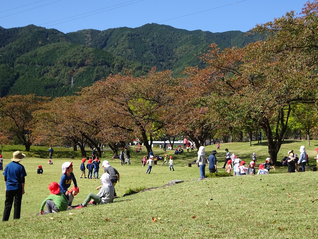 とても長い距離でしたが、年長さんにリードしてもらいながら、楽しくおしゃべりをしたり、キレイな花を発見したり… 心地よい風に吹かれながら、最後まで楽しんで歩くことができました。 到着後は、広い芝の上を思いきり走ったり、コロコロ転がったり♪ 身体を使って楽しく遊びました。 一番のお楽しみはお弁当! 愛情いっぱいのお弁当を、「おいしい!」とニコニコで食べてました。
