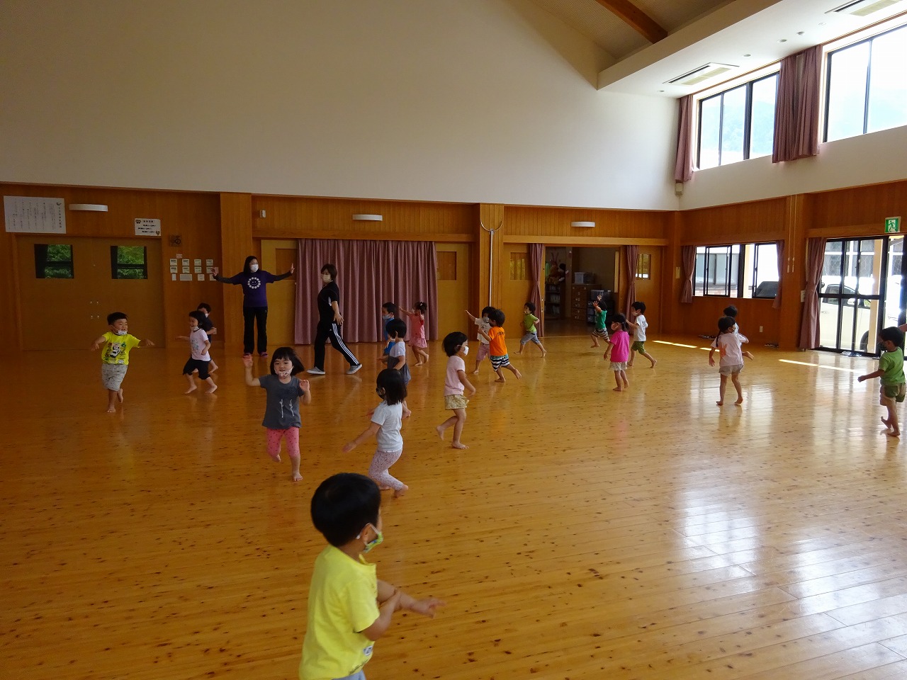 講師の先生の真似っこをしたり、ピアノの音をよく聴きながら、思い切り体を動かしました。