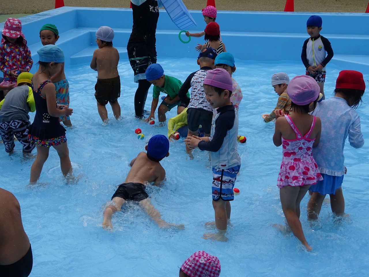 楽しみにしていたプールにやっと入ることができて、大喜びの子ども達!