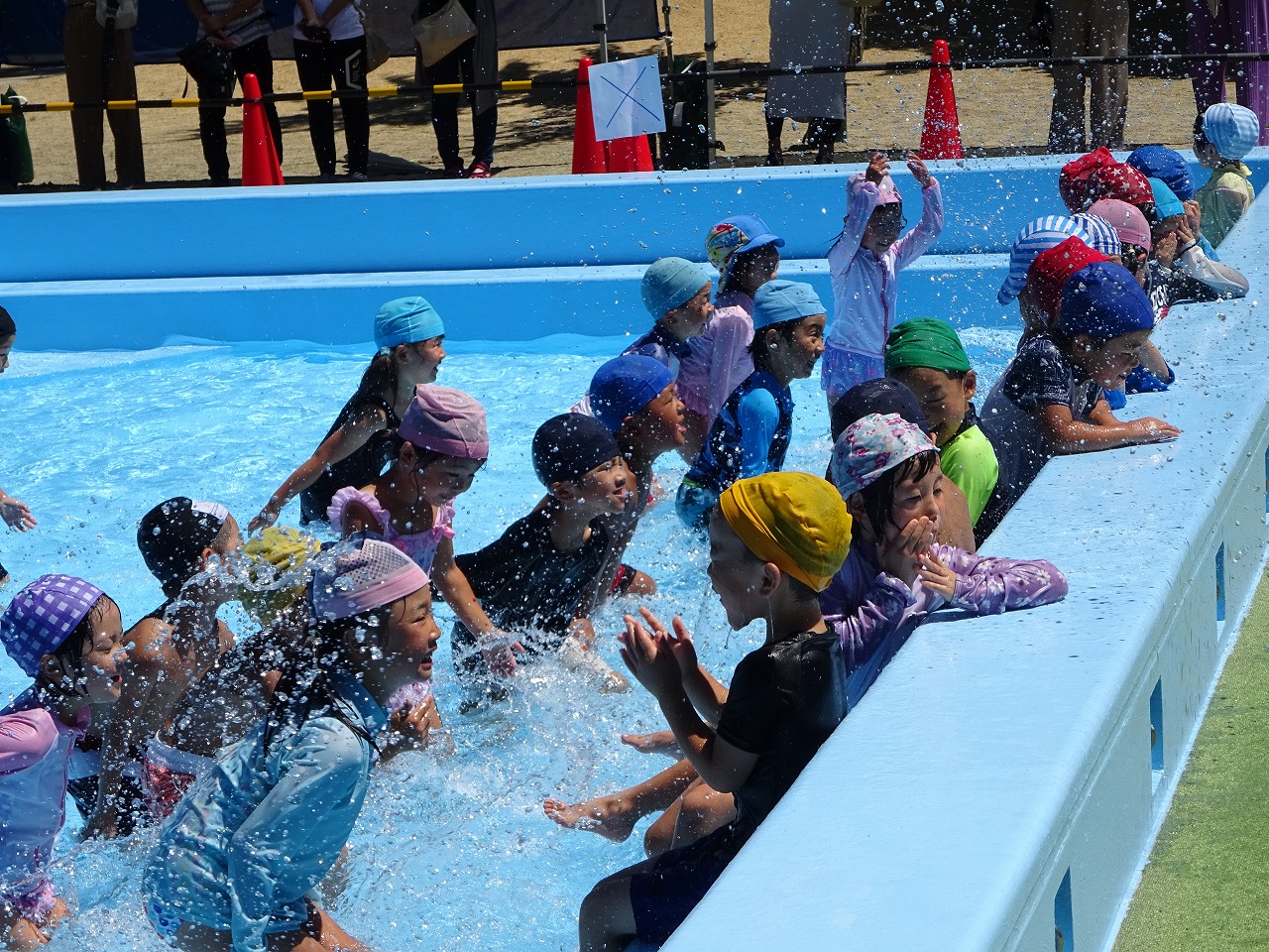 「顔付け見てもらう!」「泳げるとこ見せたい!」と、とっても張り切っていた子ども達! 良い天気の中、「見とってーー!」と、できるようになったことをたくさん見てもらうことができました。