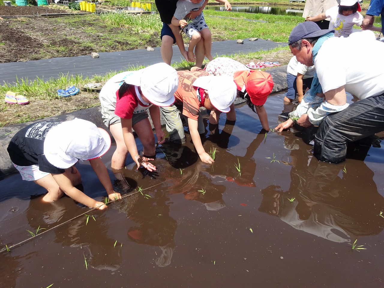 みんな大事そうに苗を持ち、自分の手で植えることができました。 秋には、おいしいお米ができることを楽しみに、また田んぼの様子を見に行きたいです。
