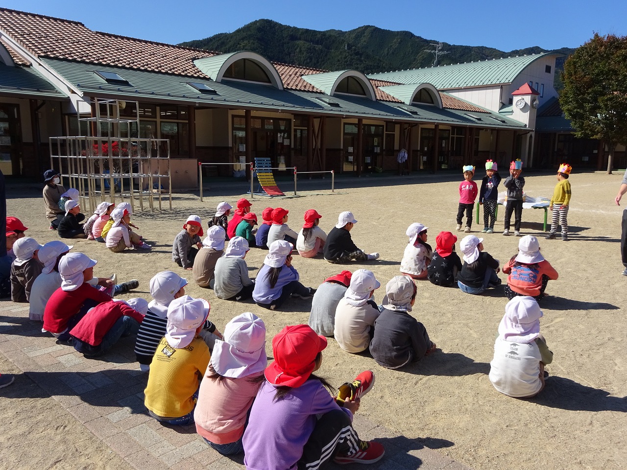 今月のお楽しみは、「綱引き」でした。 年少さんと年中さんはクラス対抗、未満児さんは年少さんと一緒に行いました。 そして、年長さんは、年長さん全員VS保育士! 軍配は年長さんに上がりました。力がすごかったです! 10月生まれのお友だち、お誕生日おめでとう!!