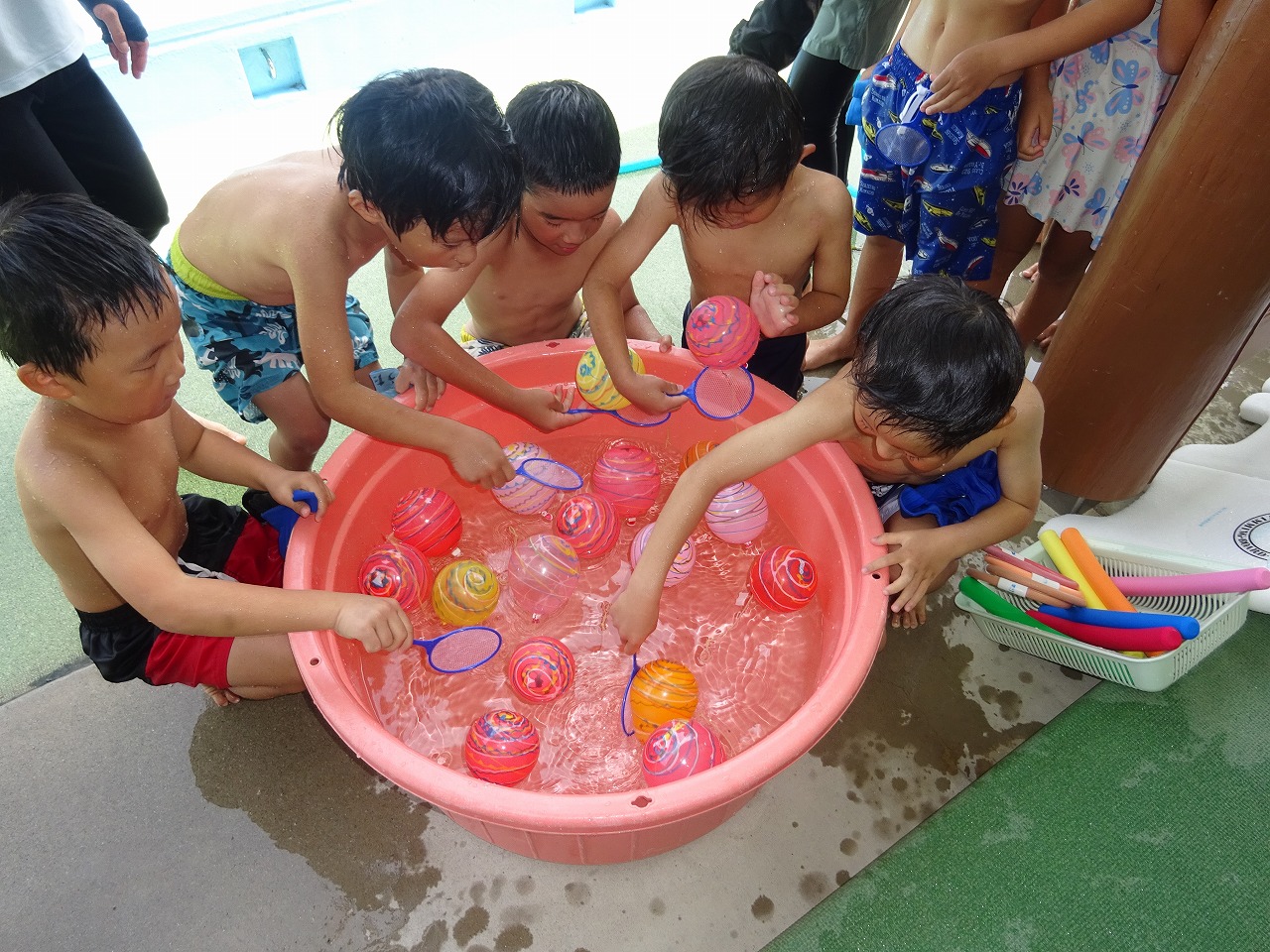 インタビューを大きな声で答える姿に、一つ大きくなった成長を感じました。 今月のお楽しみは、「ヨーヨー釣り」。 好きな色のヨーヨーを網でがんばってすくいました。 お祭り気分で、夏ならではの誕生会を楽しむことができました。 8月生まれのお友だち、お誕生日おめでとう!!