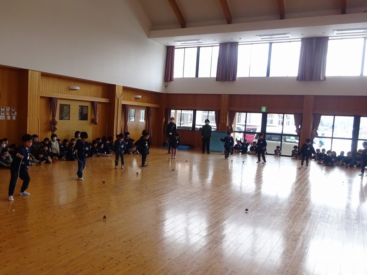 こあら組と年少は“手回しこま”、年中と年長は“ひもこま”を使って、今年もこま回し大会を行いました。 今まで一生懸命練習してきた成果が出せた子もいれば、残念ながら回らず悔しい思いをした子もいましたが、 挑戦する姿がステキでした。