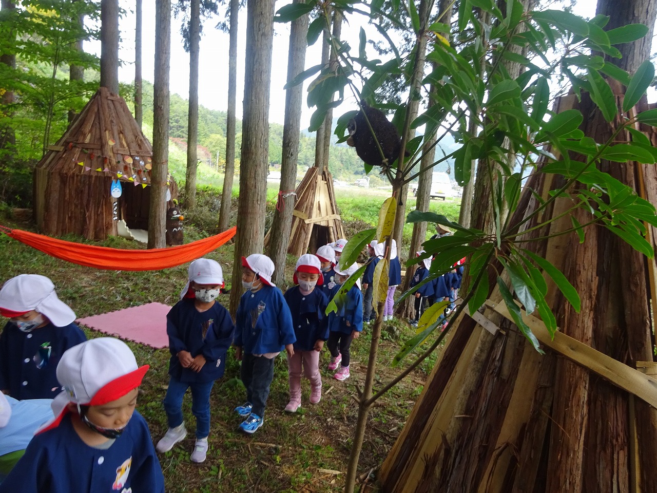 今日は、年中さんがバスに乗って野上にある「森のようちえん」に行ってきました。 |