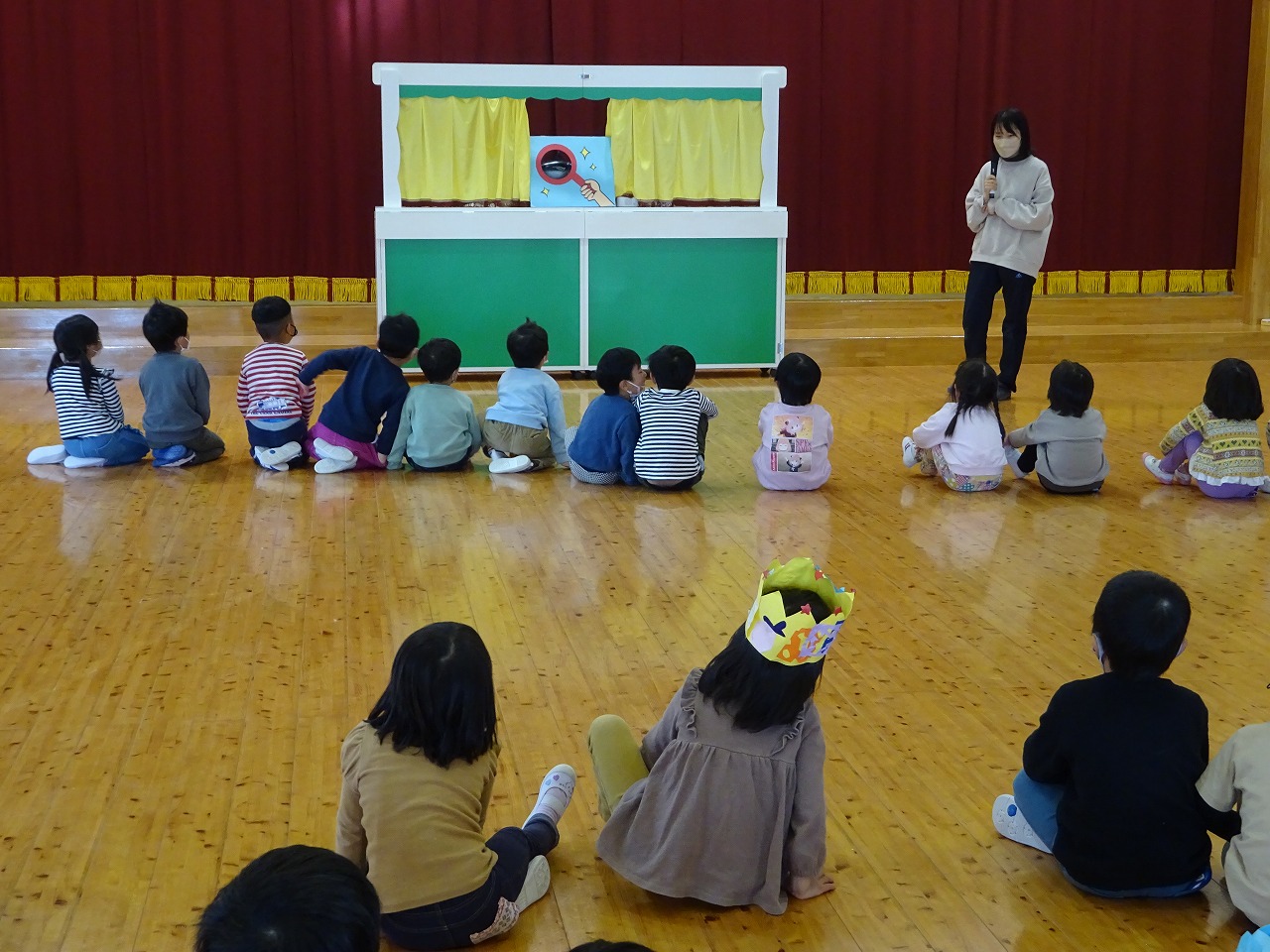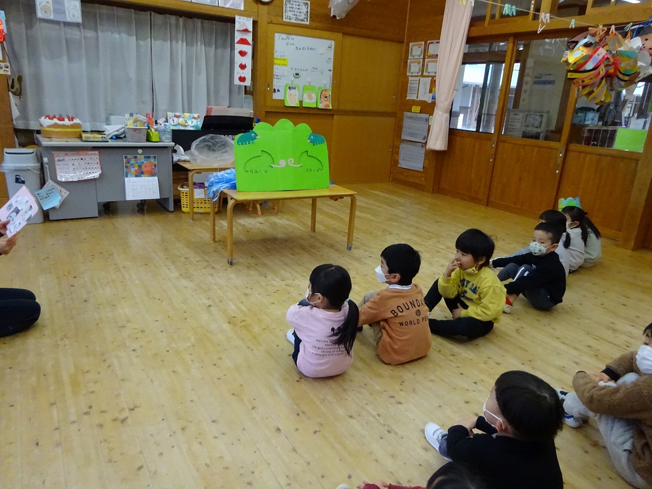 和やかな雰囲気の中、誕生月のお友だちが大きな声でインタビューに答えてくれました。 |