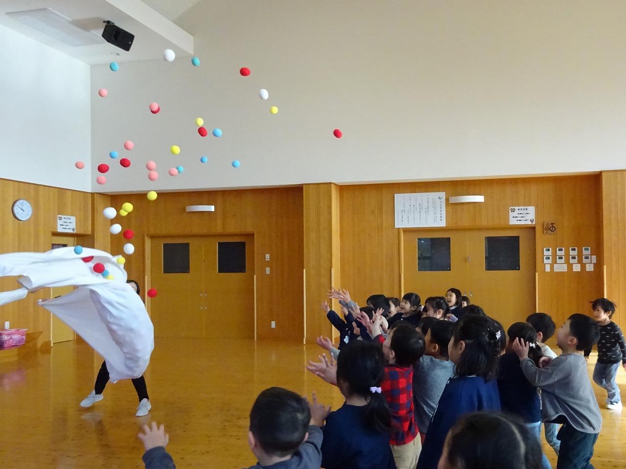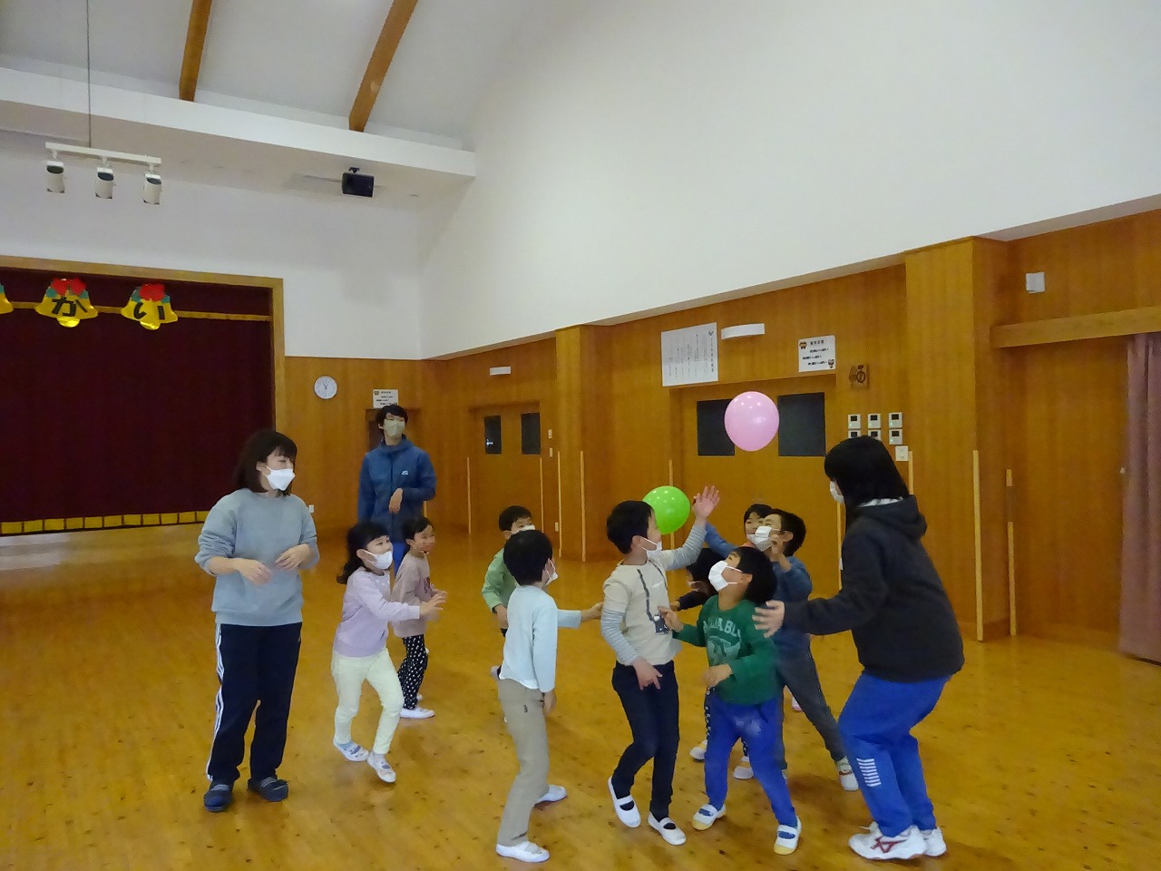 今日は、年少さん・年中さん・年長さんがレクリエーションに参加しました。 |