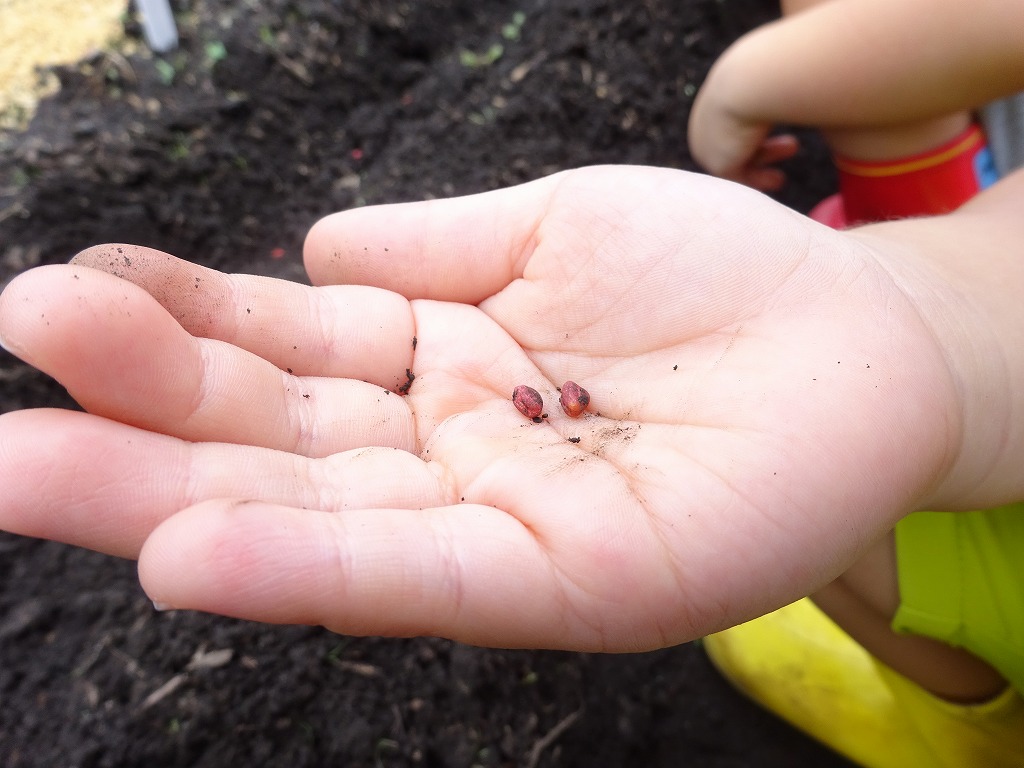 未満児さんと年中さんが、大根の種まきに行って来ました。 |
