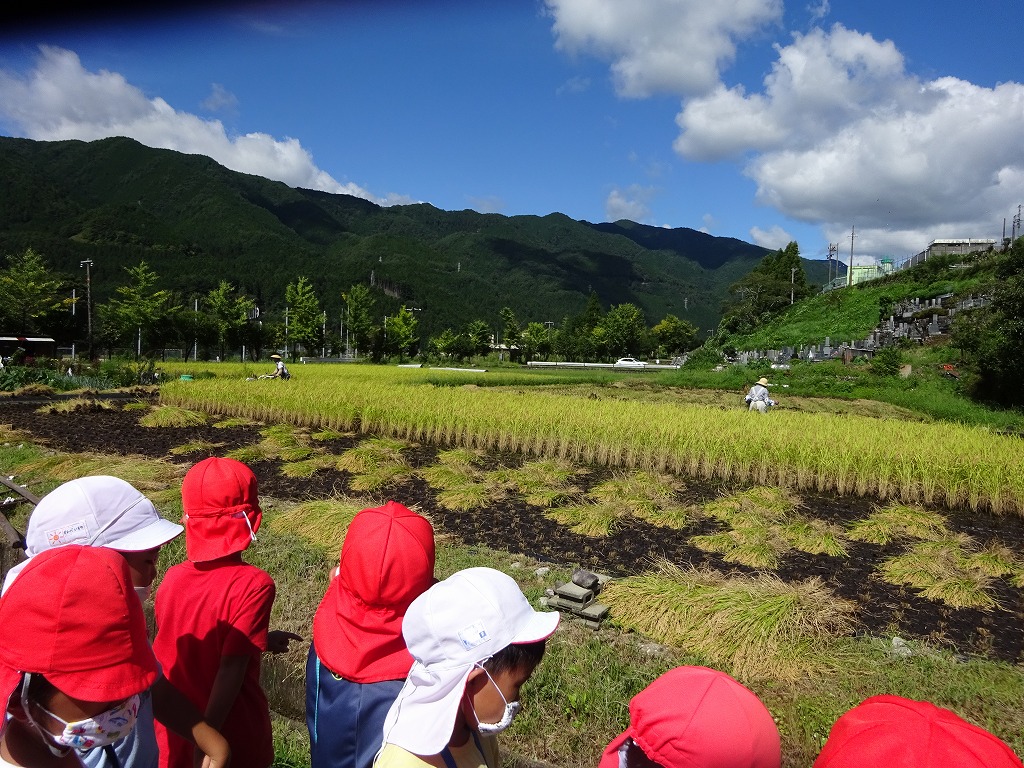 今日は、年長さんが稲刈りの見学にでかけました。 |