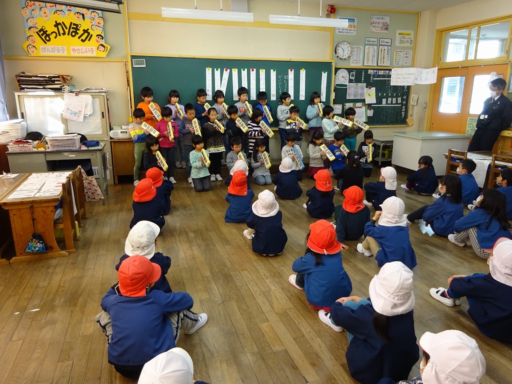 春を感じるような暖かい日に年長さんは萩原小1年生の皆さんから招待を受け、交流会に行ってきました。 |