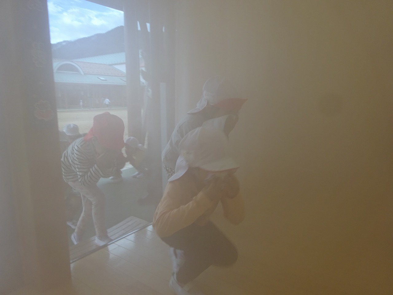 朝から、「いつ消防車くるの?」と心待ちにしていた子ども達。 |