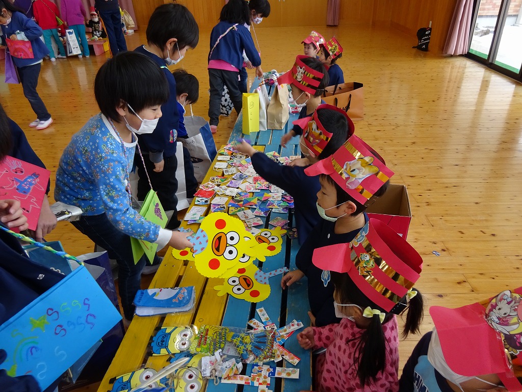 子ども達が毎月心待ちにしていた益田清風高校のお兄さんお姉さんの保育実習が最後になり、みんなでお別れ会を行いました。 |