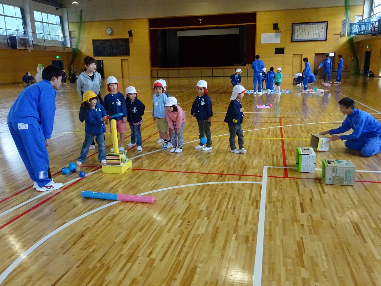 南中学校の体育館で、3年生のお兄さんお姉さんと一緒に遊んできました。 |