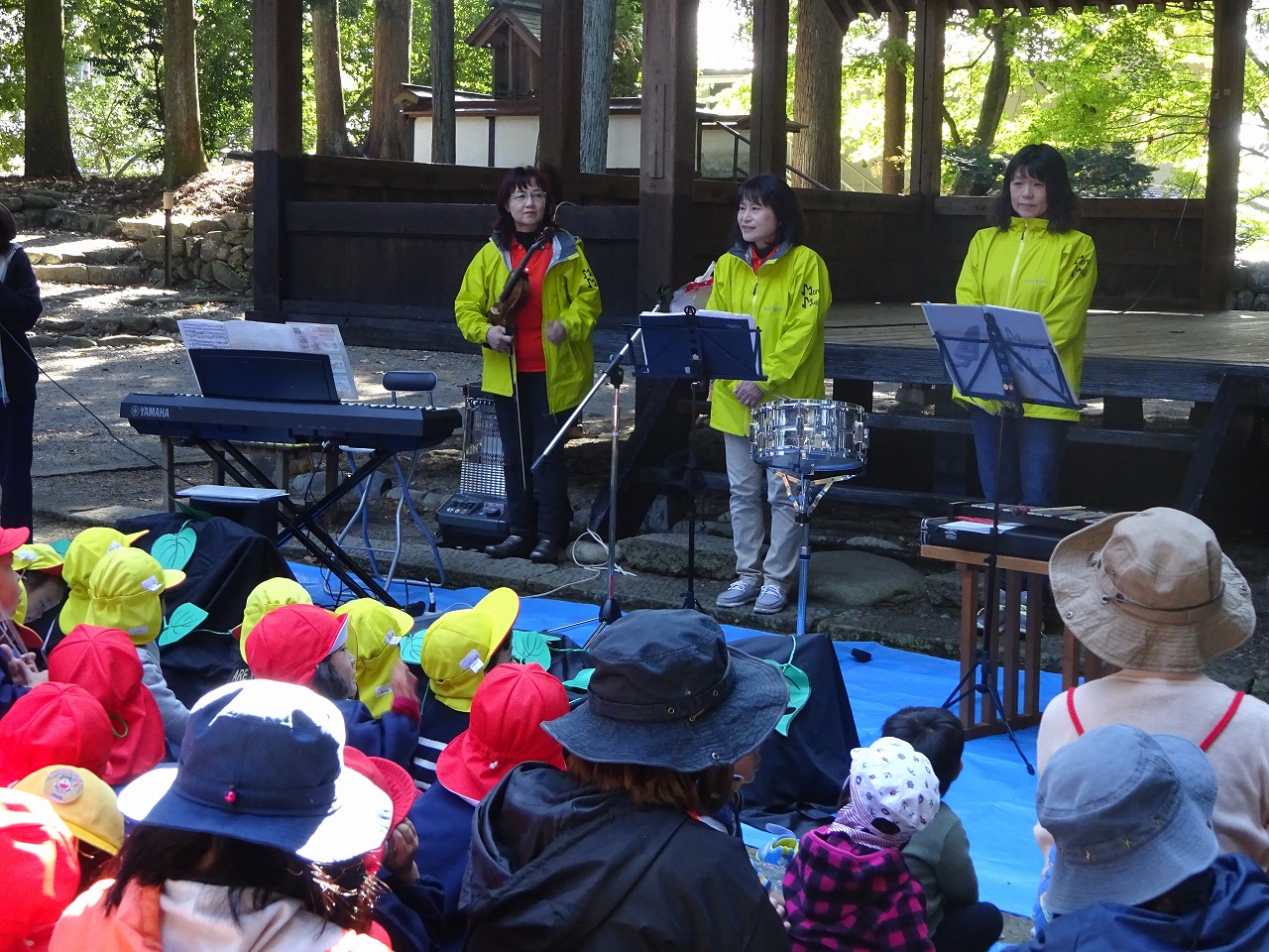 諏訪神社で今年も“鎮守の森コンサート”が開かれ、全園児で参加してきました。 |