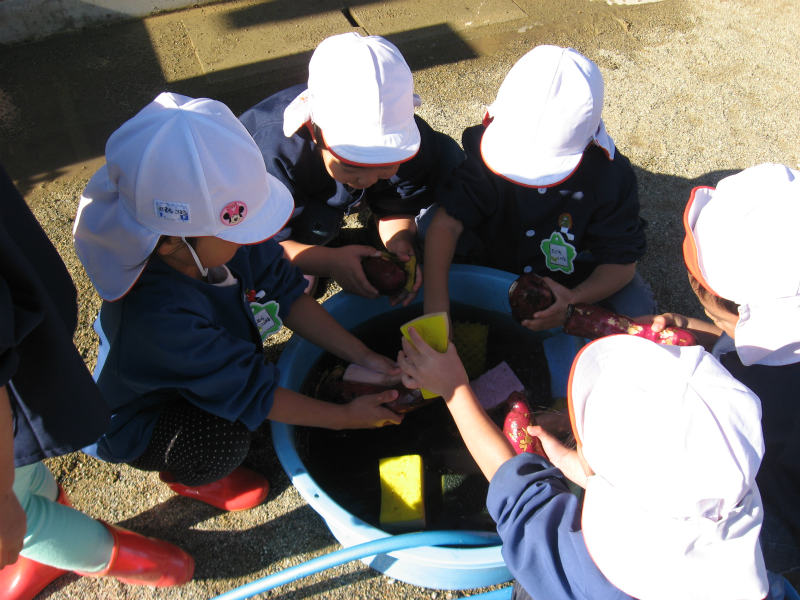 先日さつまいも掘りをして収獲したさつまいもで、焼いもを行いました。 |