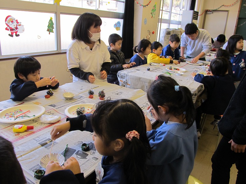 今年も折り紙に先生滝内さんが来園してくださり、サンタクロースの織り方を見せてくださいました。 |