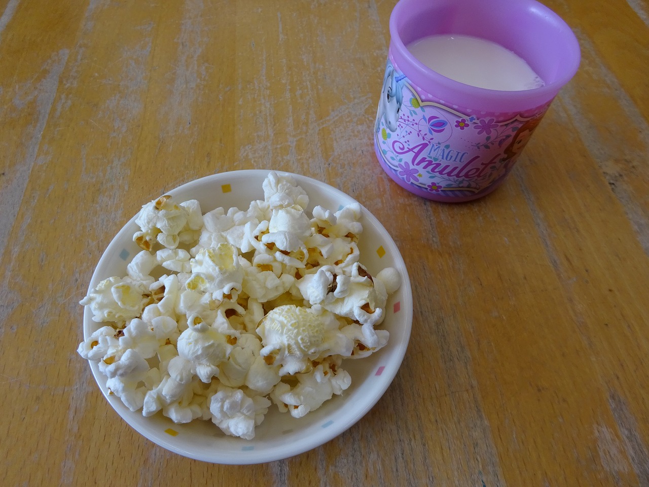 『ポップコーン』 ポップコーンの種を購入し、作りました。 焦げないように注意しながら、すべて弾けるよう鍋を絶えず揺らし続けます。 塩をふりかけて完成。 子どもたちは、喜んで食べ、おかわりもしてくれました。