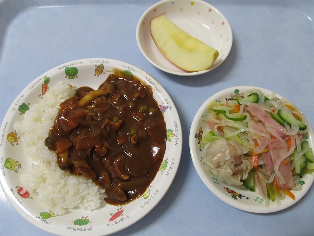 11月21日(月)給食 ・ハヤシライス ・マロニーの中華和え ・蒸しシューマイ ・りんご