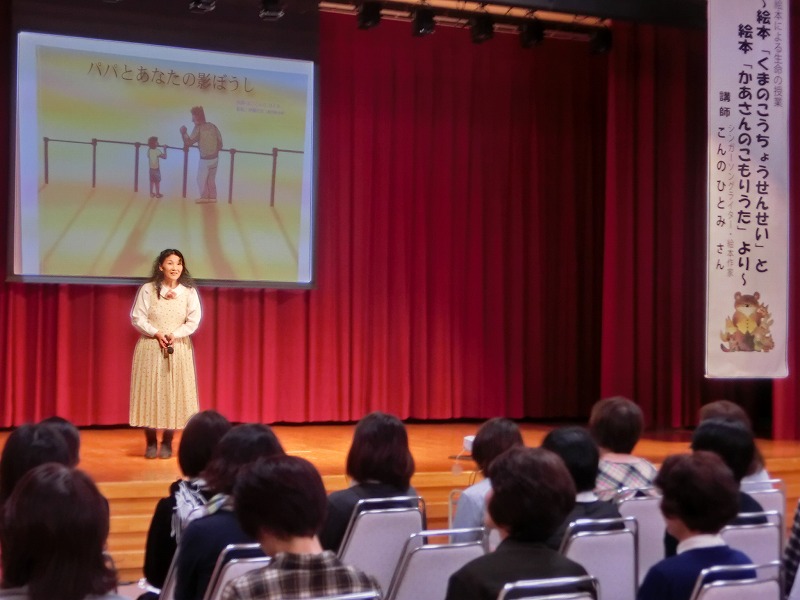 講演に歌や読み聞かせが盛り込まれ、とても穏やかなお話の中に力強さを感じるこんの先生のお話は、来場者の心に残る姿だったと思います。