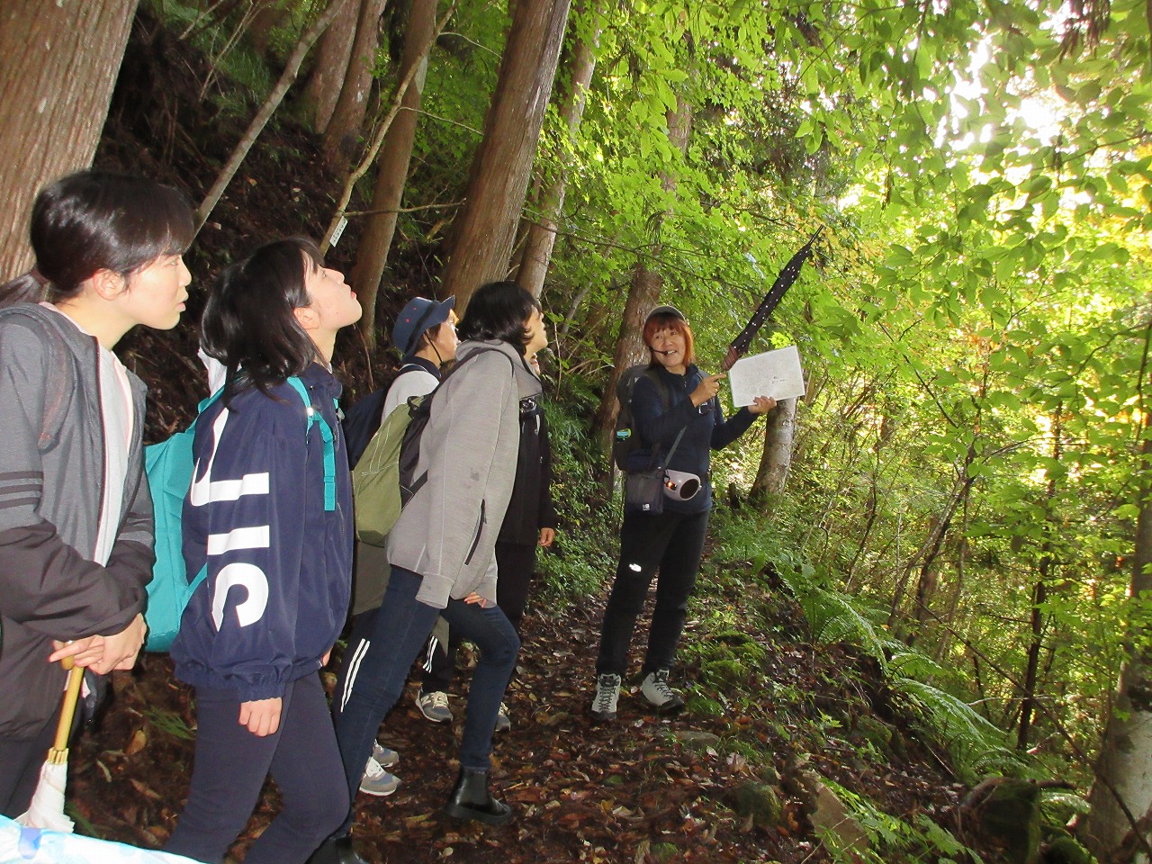 春は萩原町四美にある「皇樹の杜」で、秋は「小坂の滝」でそれぞれ準備された3日のうち、各自都合の良い日を選んで1日フィールドワークに参加した。