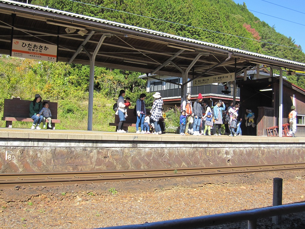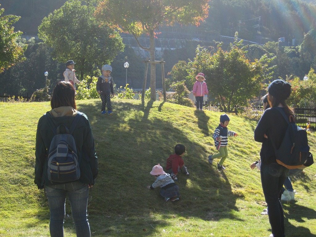 飛騨萩原駅から飛騨小坂駅まで列車に乗ってきこり公園へ行きました。 初めて列車に乗る子もおり、ジッと座っている子、興味津々で外を眺めている子など様々でした。 きこり公園ではみんなで鯉のいる池を見て回り、おやつを食べてから自由に遊びました。 築山やステージ、芝生の上でのびのびと時間いっぱい遊ぶことができました。