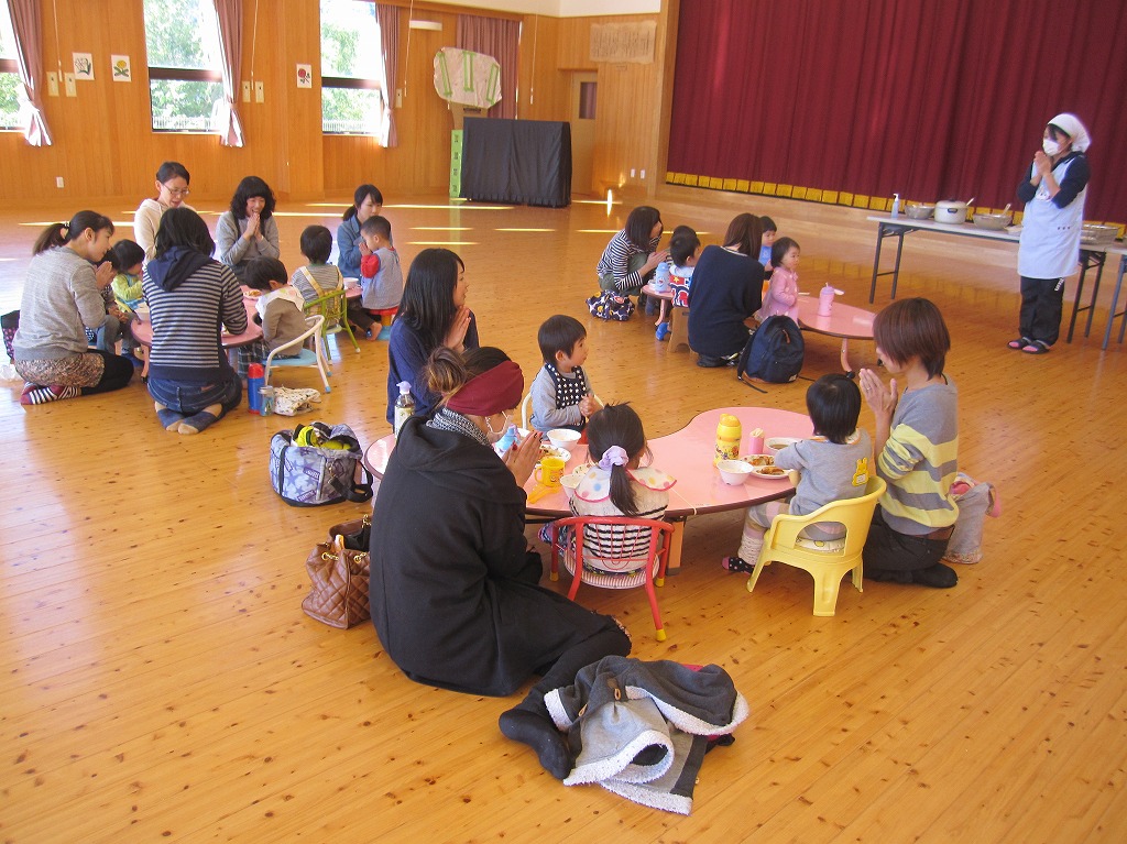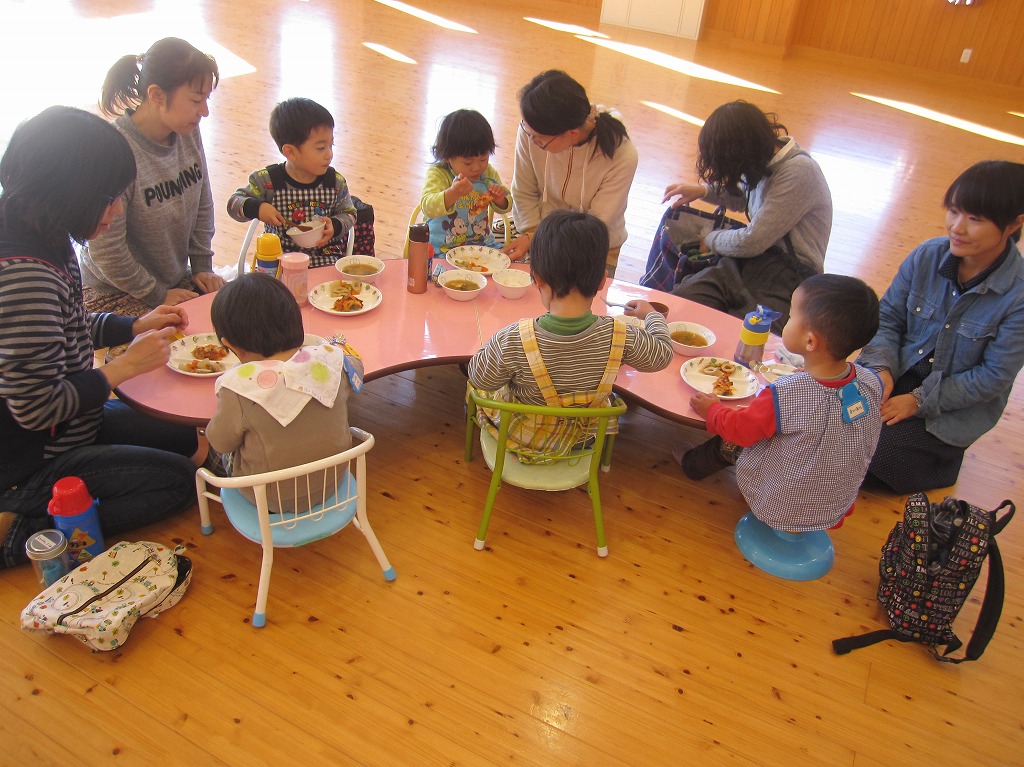 栄養士の林加奈子に園給食についてや、家庭での食事の在り方について話を聞きました。 試食会では園児が食べているものと同じものを食べてもらいました。 お友だちと一緒に食べることは楽しく、子どもたちは長い時間座って食べることができていました。 また、親子共に給食の様子や味を知ってもらうことができて良かったです。