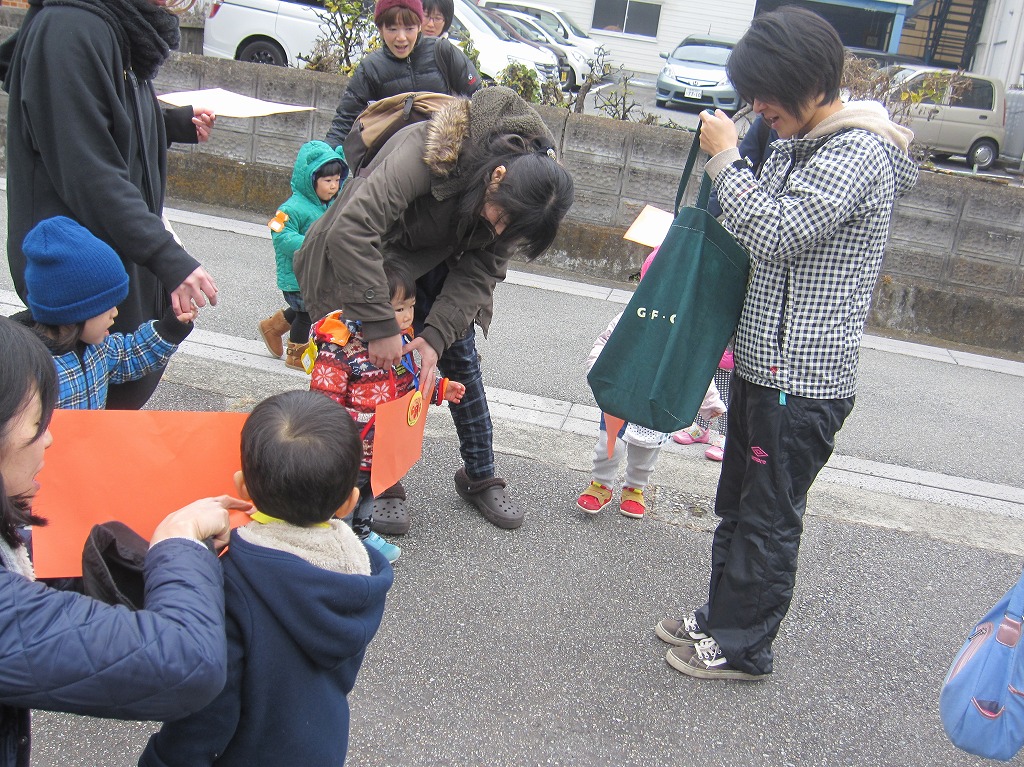 地図を持って3つのポイントをまわり、スタンプを全部集めてゴールしたみんなに、ご褒美のメダルをプレゼントしました。 スタンプを押してもらうと子どもたちは嬉しそうでした。 歩きながらどんぐりや木の実を拾ったり、お店の展示物を見たり、親子で散歩を楽しみながらいろいろ発見できました。 長い距離でしたが、子どもたちは自分の足で歩くことを頑張っていました。