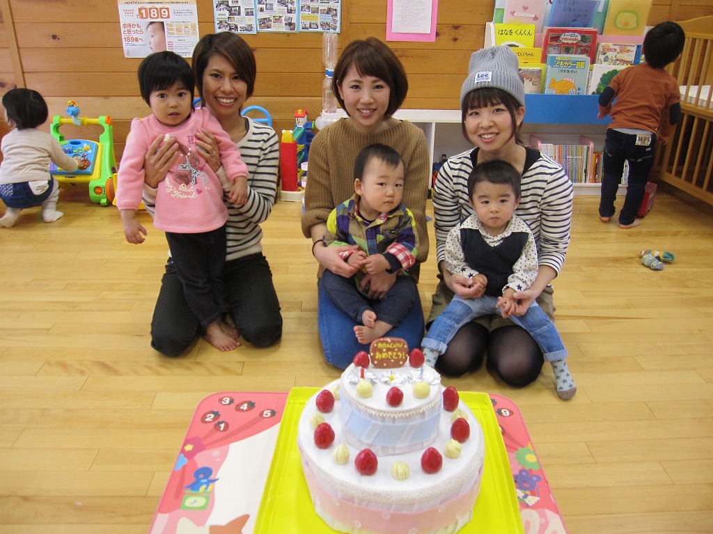 手遊び、ふれあい遊びをお母さんと共に楽しんでいました。 大きなケーキが出てくると、「わぁ〜」と言い集まってくる子どもたちはとても可愛らしかったです。 お母さんと一緒に温かい雰囲気の中での誕生会となりました。 12月生まれのお友だち、お誕生日おめでとう。