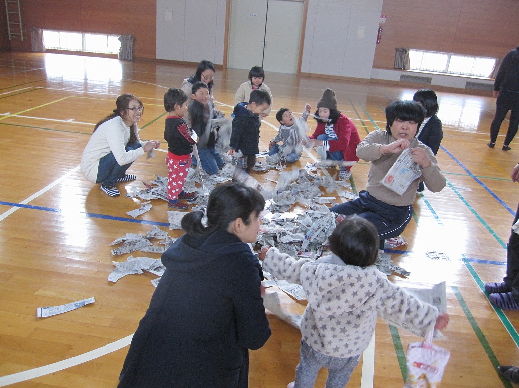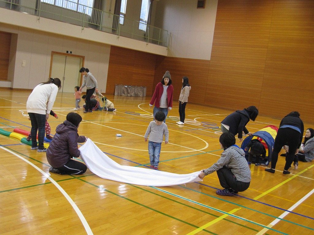 0〜3歳のお子さんと親さんが集まり、大前貴子先生と一緒に体を動かして遊びました。 音楽に合わせて踊ったり、親子で触れ合ったり、サーキット、電車ごっこ、新聞ビリビリなどを行いました。 大前先生の明るさと、いっぱい褒めてあげることで、親子共に笑顔になり、思う存分体を動かすことができました。 親さんも先生も「楽しかったです」と言って帰られました。