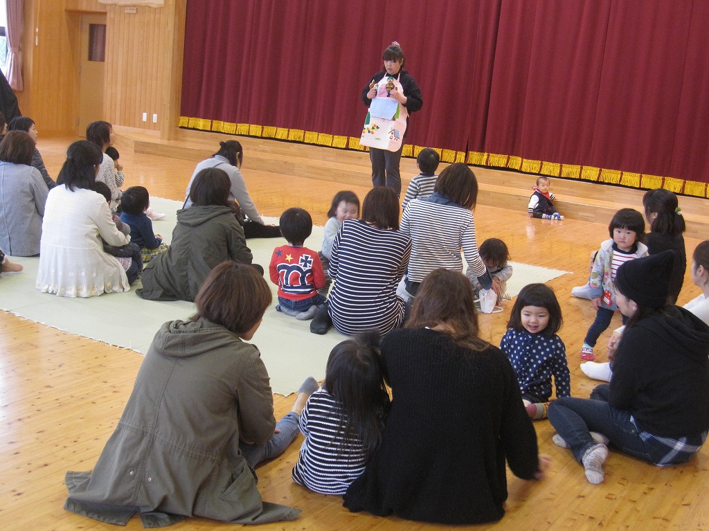 記念撮影、姫りんごさんによるエプロンシアター、紙芝居、新旧役員さんのあいさつと紹介を行いました。 写真は役員さんが作ってくださった台紙に貼り、皆さんにプレゼントしました。 役員の皆さん、1年間お疲れ様でした。
