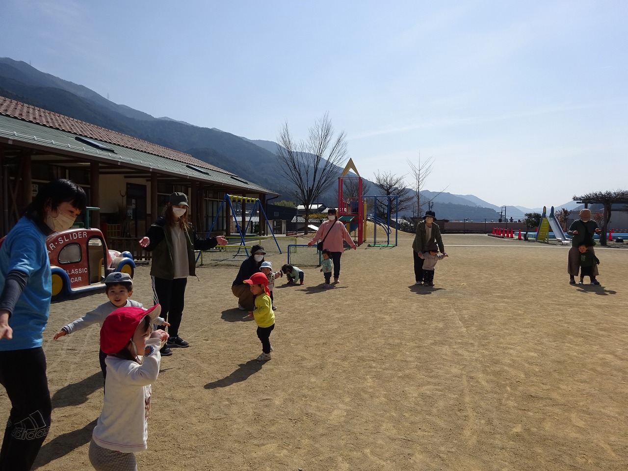 3月11日(金)ポカポカ陽気の中、人数制限をして園庭開放をおこないました。 1年で大きくなったお子さんの成長を感じながら、お母さんたちも一緒にたくさん体を動かして遊んでみえました。 4月から年少さんになるお子さんが多かったので、お片付けの後は「からだダンダン」の体操をし、最後にメダルをプレゼントしました。 入園に期待をもってもらえると嬉しいです。