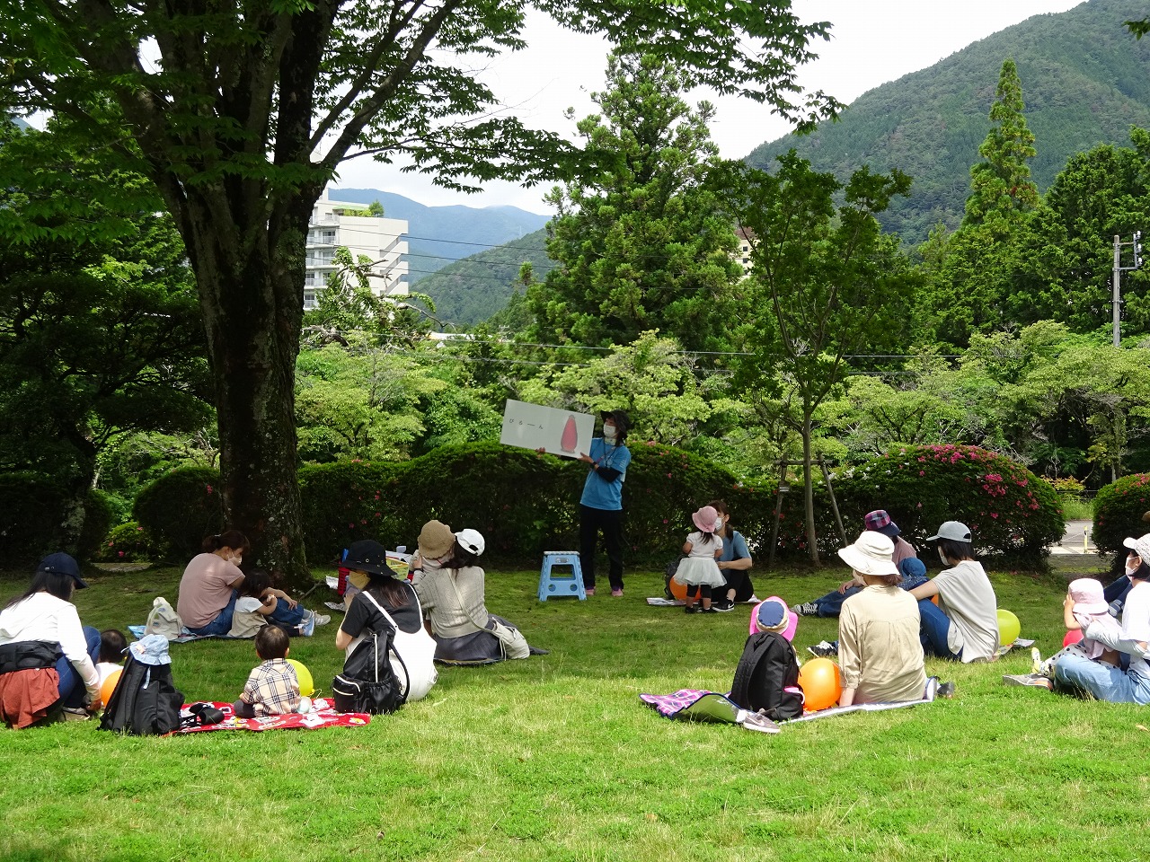 最後はのんびりと絵本タイム。心地よい自然の中で親子で楽しく過ごすことができました。