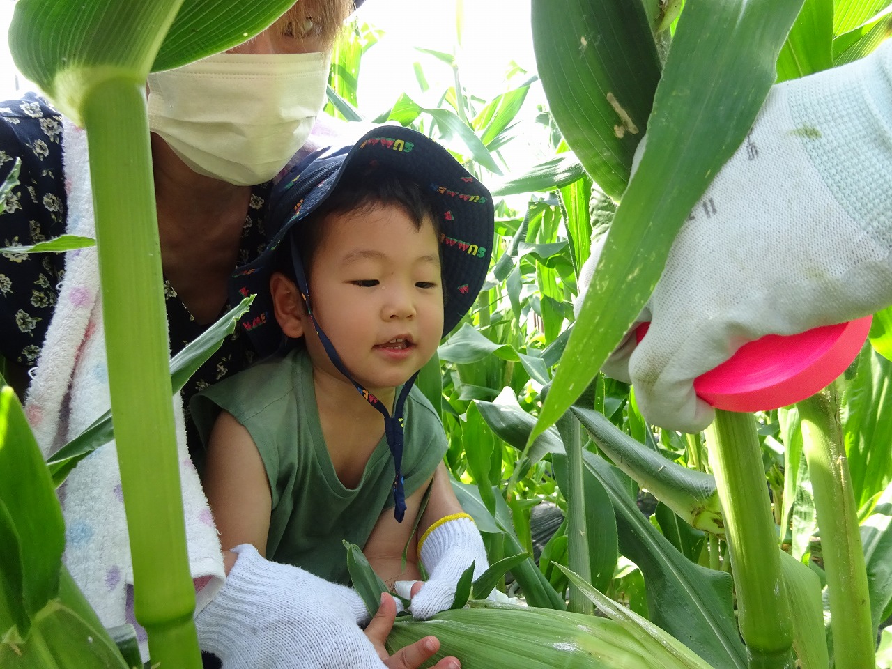 7月26日(火)農園デーでとうもろこしの収穫をおこない、10組の親子が参加されました。
