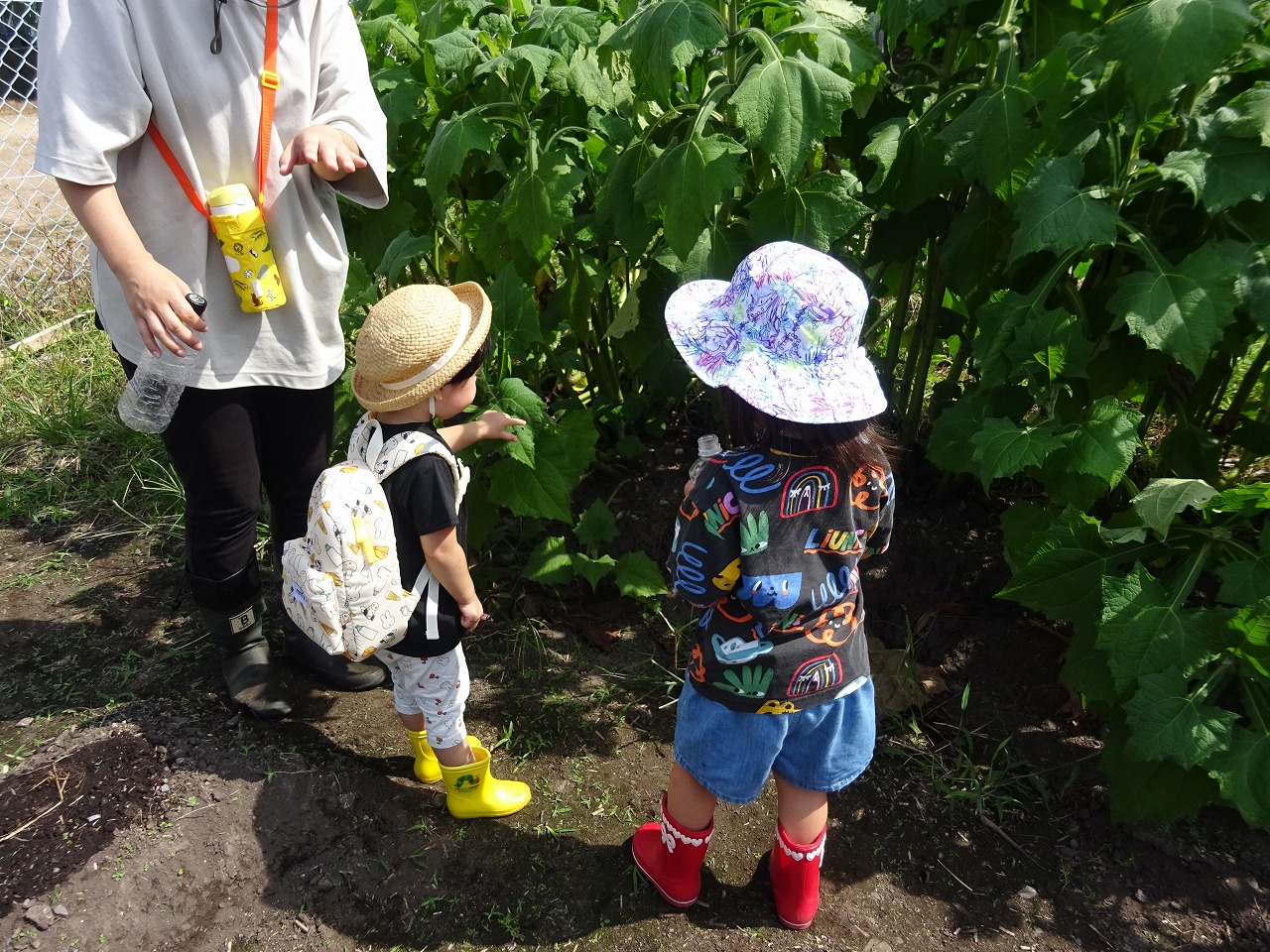 9月13日(火)おひさま農園デーをおこない、10組の親子の参加がありました。 先週蒔いた大根と人参の芽が出てきており、小さな芽に優しく水をあげてくれたお子さんたちでした。 大きく立派になったヤーコンにも驚き、葉っぱに触ったり、草を取ったりと親子で楽しく活動することができました。