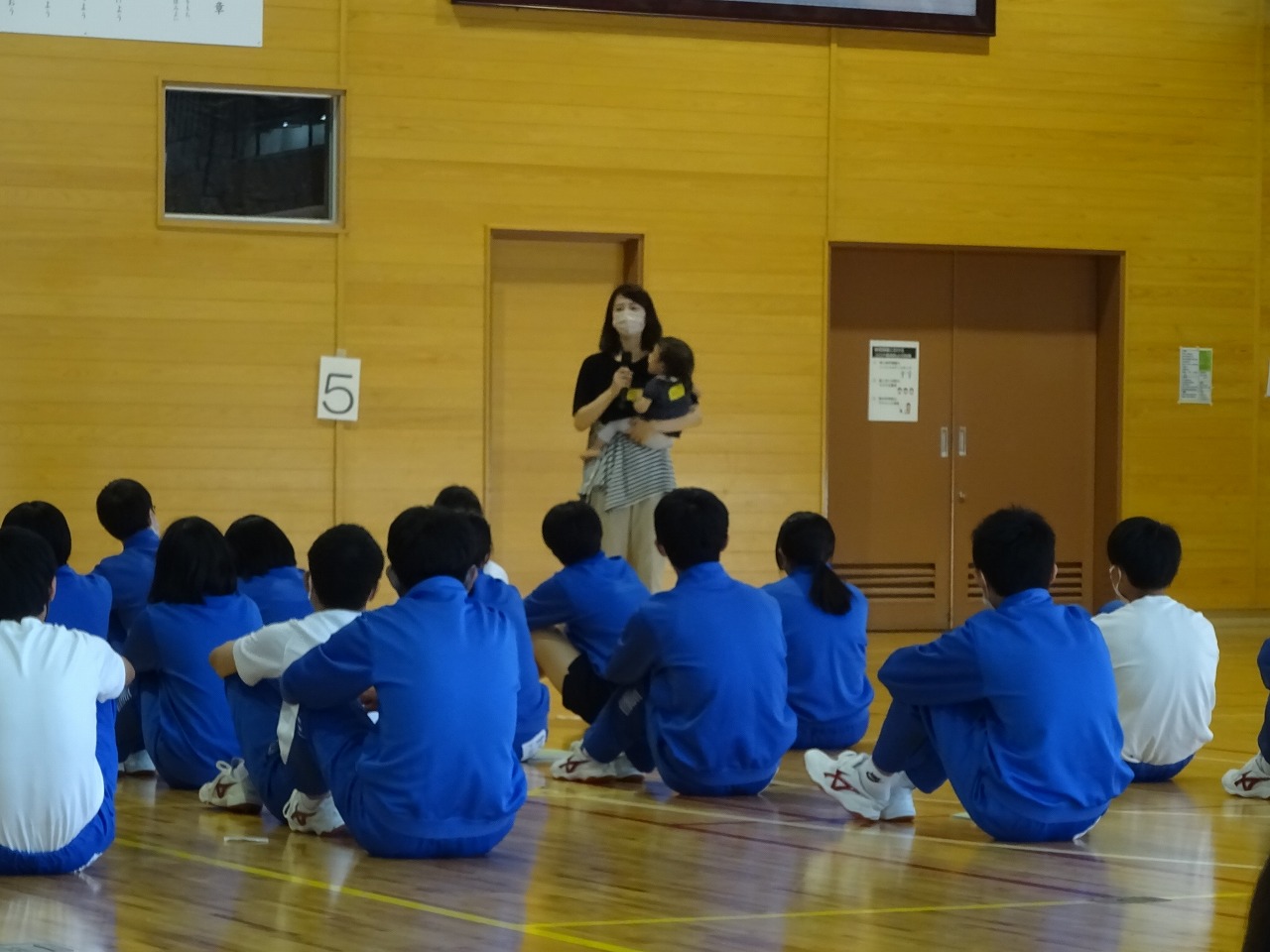 9月26日(月)こりすくらぶの親子さん方が、萩原南中学校3年生の「命のふれあい講座」に参加されました。 思春期の中学生が一生懸命お子さんたちに合わせて絵本を読んでいる姿はとても微笑ましく、中学生、お母さん方共にこれまでのことやこれからの事を思い、色々と感じてみえたようでした。 お母さん方の感想でも「普段はできないような良い経験が親子できてよかった」といった内容が多く、忙しい子育ての合間のよいひとときになったようでした。 小さい子が喜んでくれて思わず微笑む中学生の表情も印象的でした。