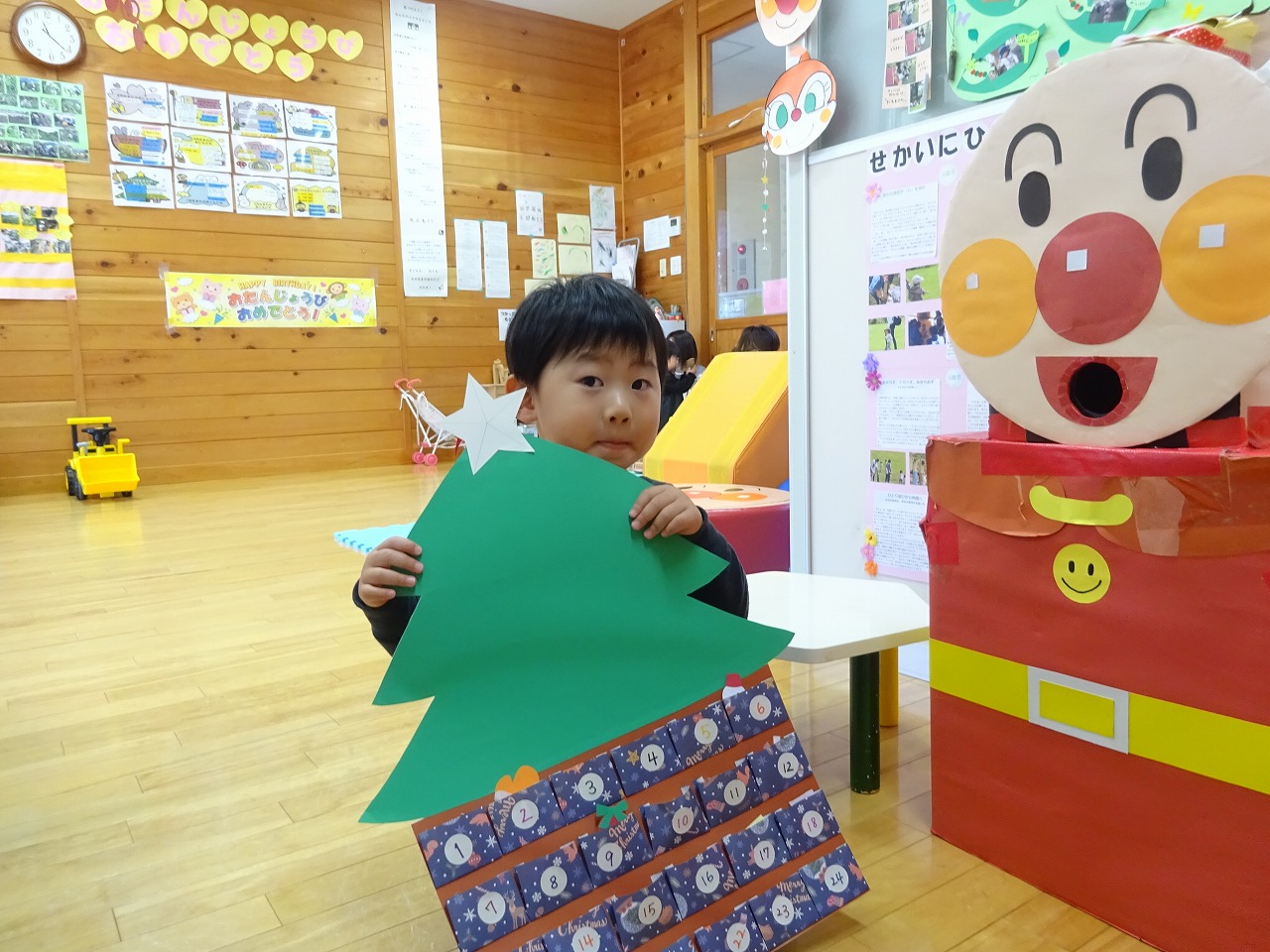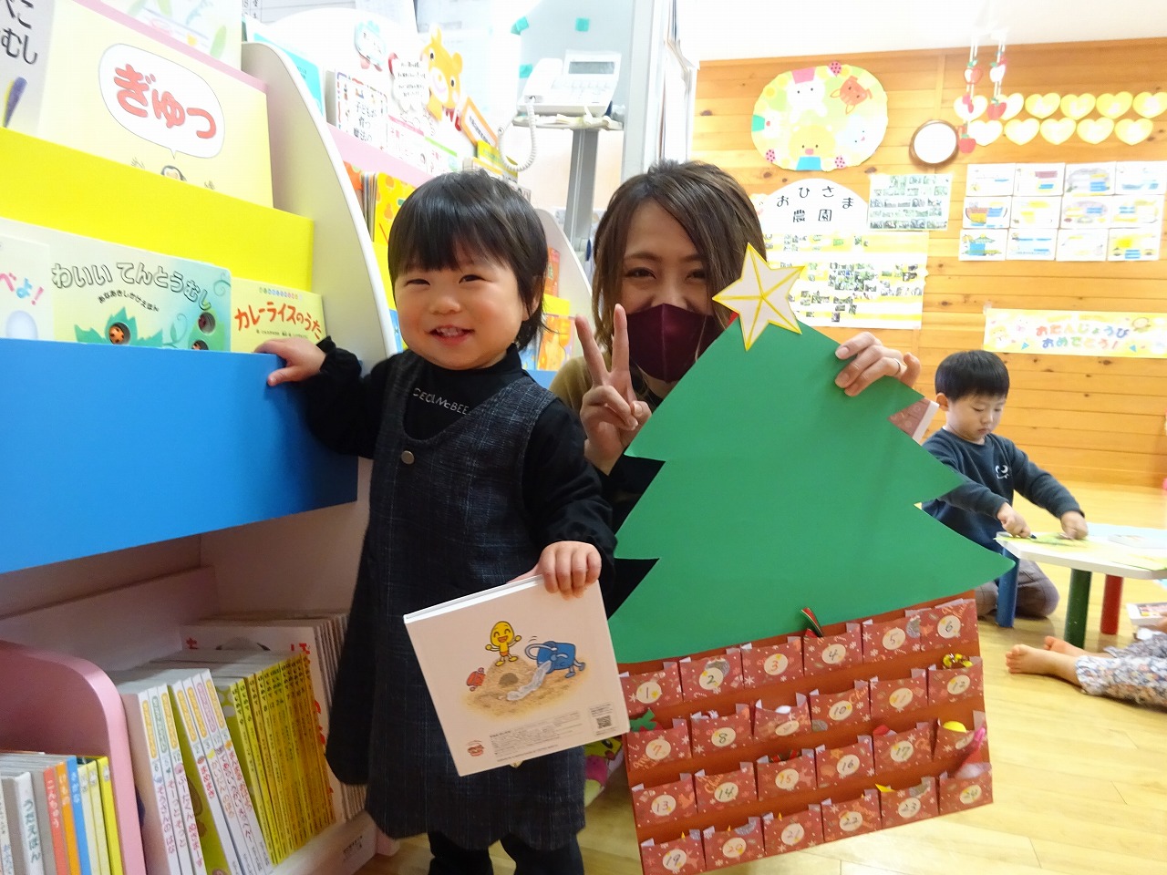 11月の作って遊ぼうでは、クリスマスまで楽しく過ごせるように手作りのアドベントカレンダーの製作キットを用意しました。お母さん方がとても喜んで下さり、お子さんと協力して作る光景もみられ、季節を感じられるひとときとなりました。
