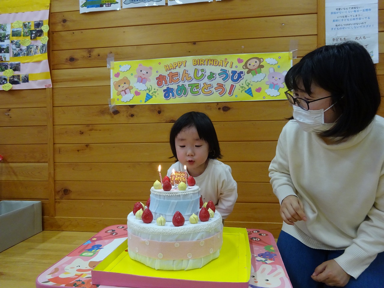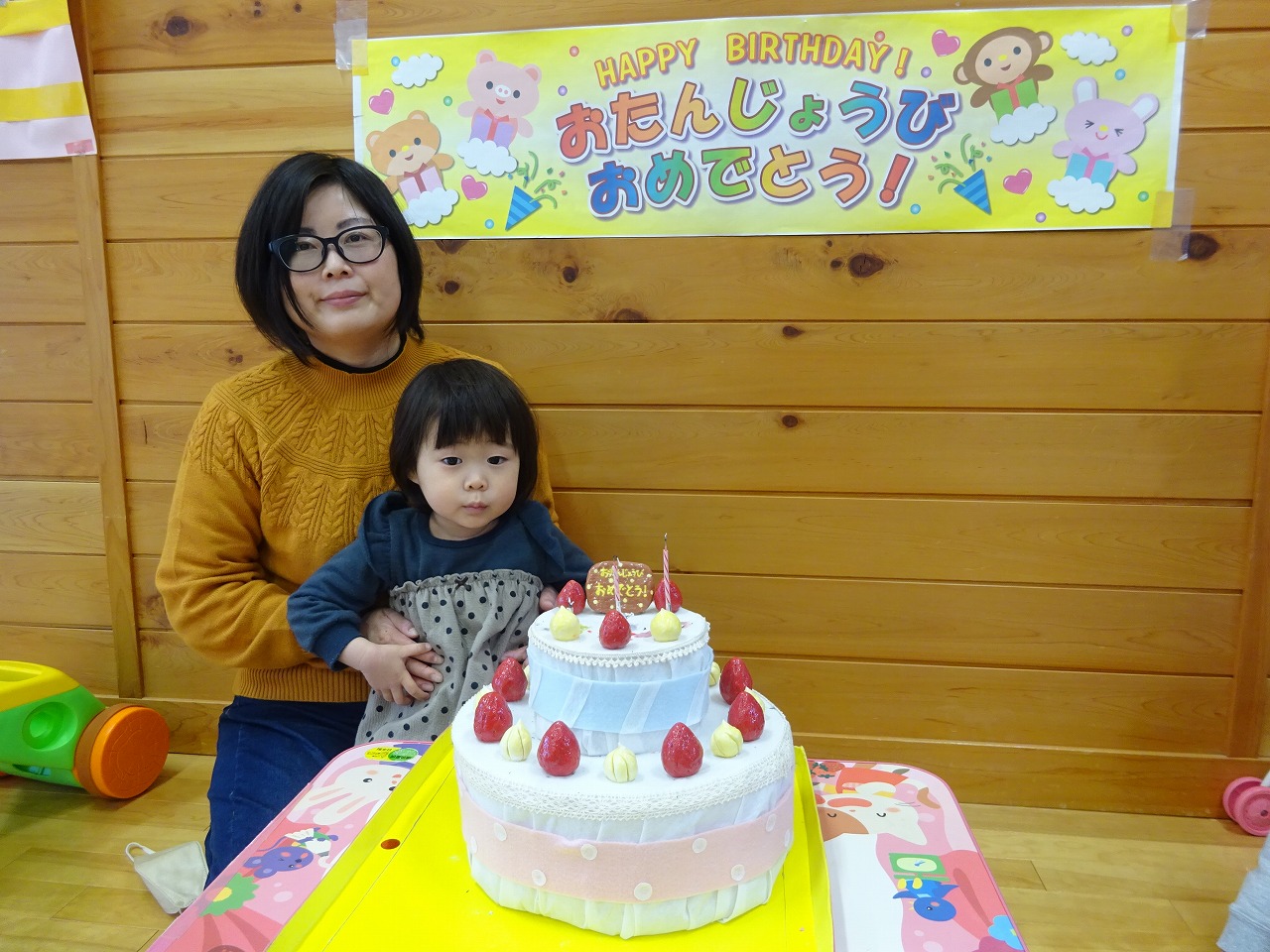 たくさんのお友達にお祝いしてもらったり、お母さんと「ピース!」と言いながら写真を撮ることを喜んだりと様々な成長が見られました。