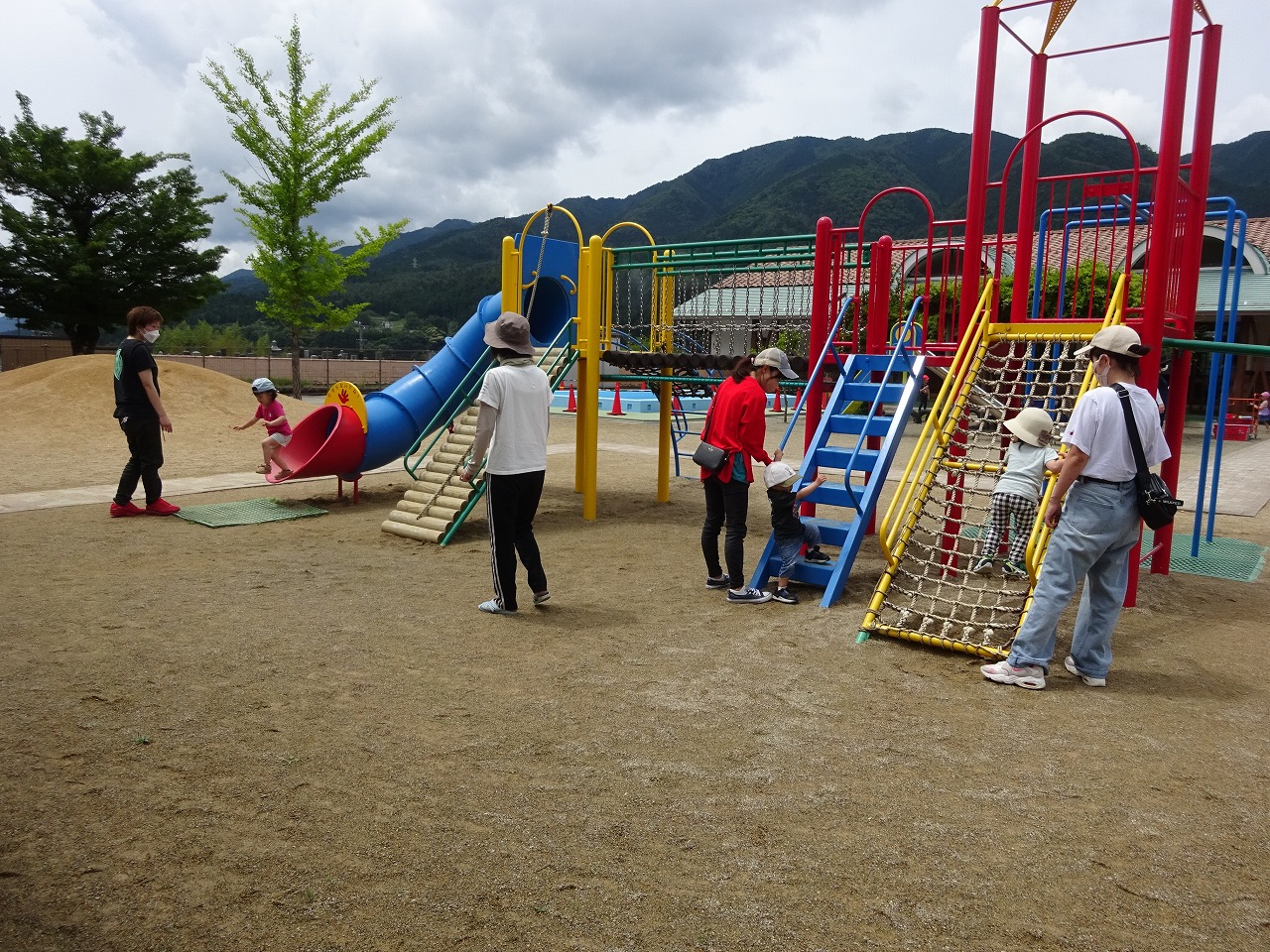 今年度初めての園庭開放でしたが、大型遊具や砂場、ブランコで体をたくさん動かしてあそんでいました。