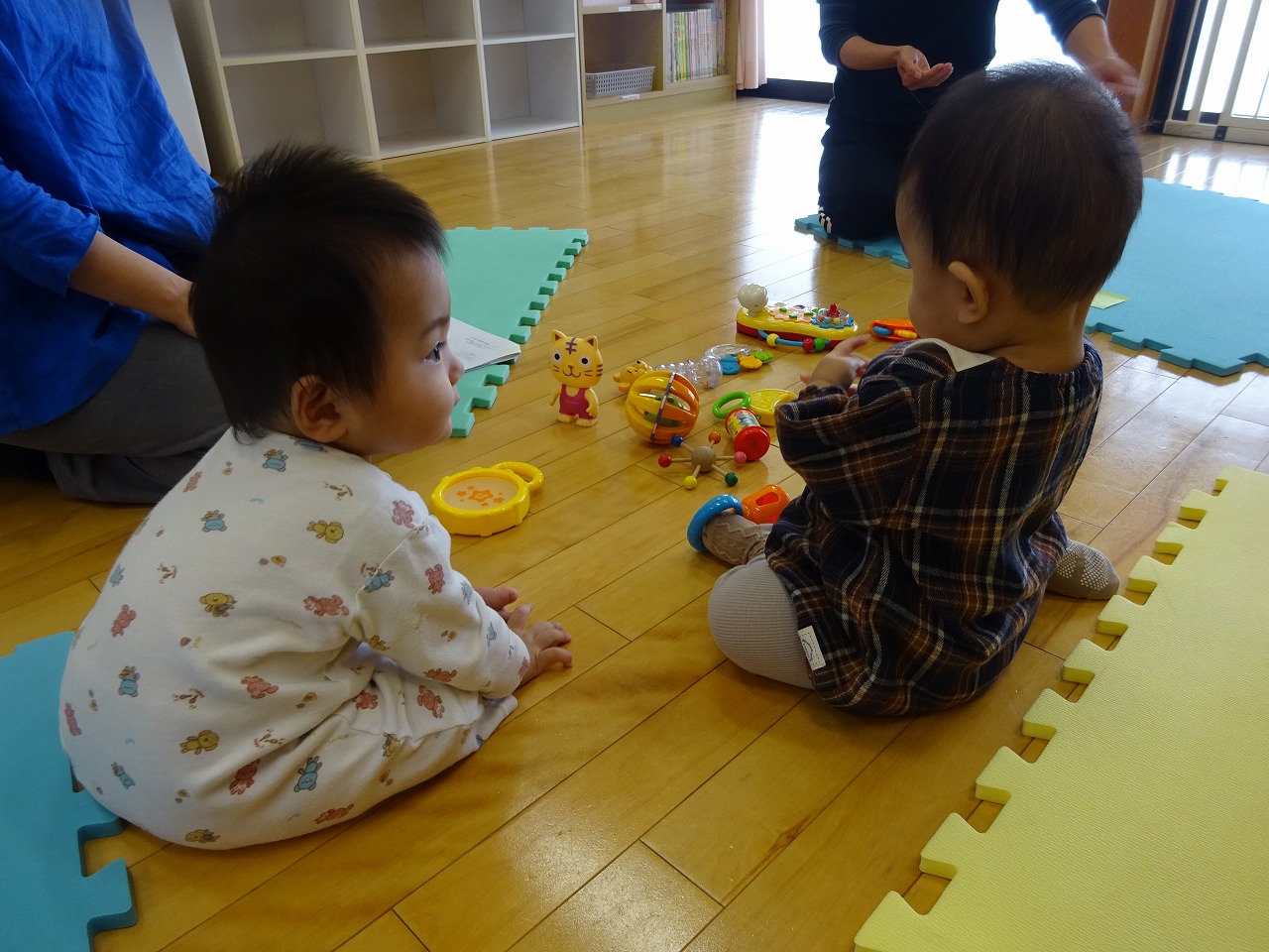 10月6日(金)1歳までの赤ちゃんとママの交流会「ぽっかぽかDay」をおこない、2組の親子の参加がありました。 和やかな雰囲気の中でママたちが食事のことや気軽に遊びに行ける場所などを話すことができました。 ママたちがニコニコしながらおしゃべりをたのしんでいると、最初はじっとしていたお子さんたちもだんだんと動き始め、声を出したり笑顔がみられるようになりました。 来月も楽しみです。
