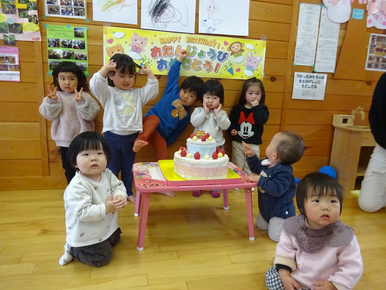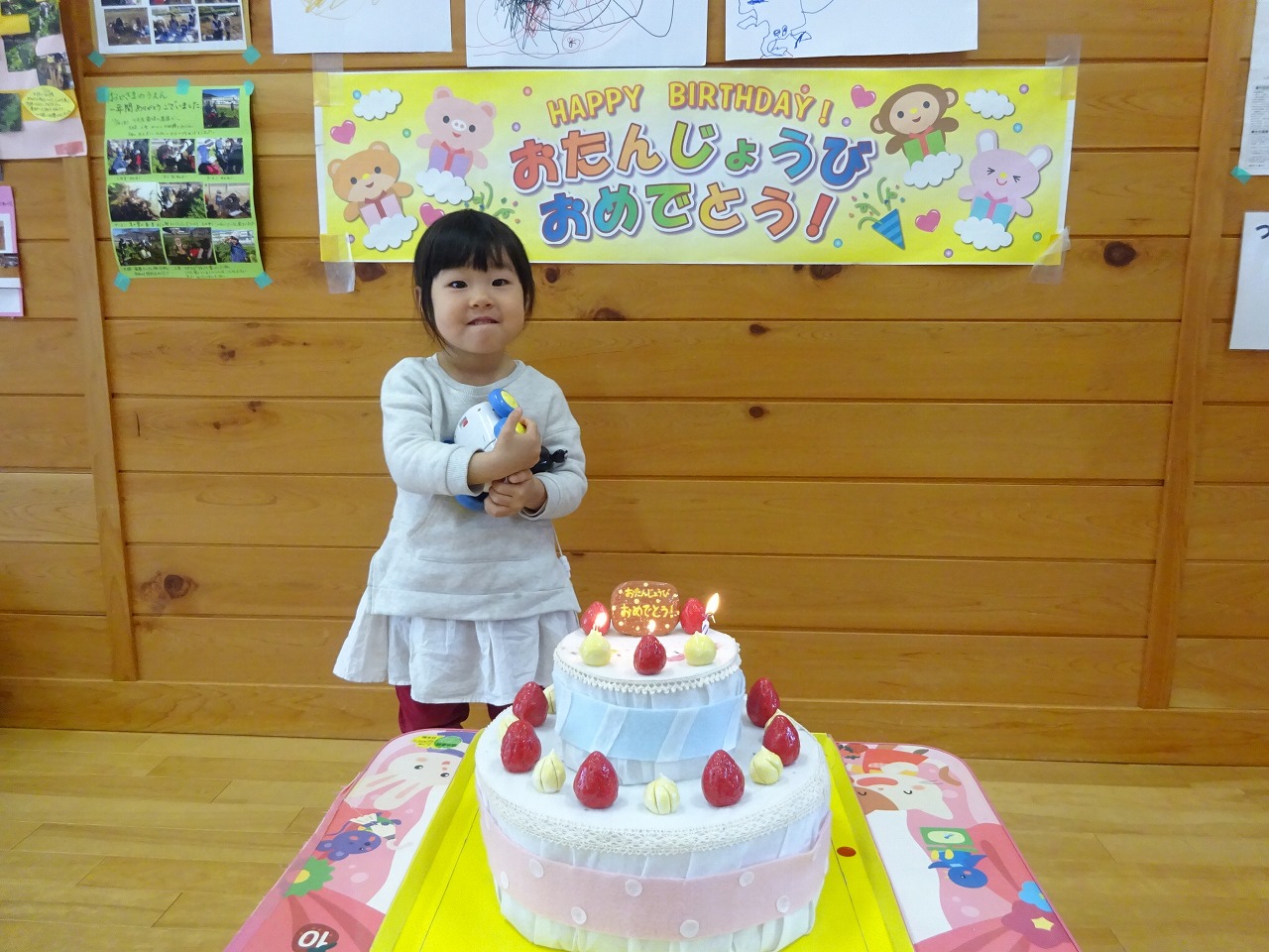何度も他の親子の誕生会にお祝いをしてくれていた方が多かったので、お子さんたちは待ちに待っていた!という感じで嬉しそうにケーキの前に立っていました。ちょっと照れながら微笑んでいる姿がとてもかわいらしく、いい思い出になったようでした。