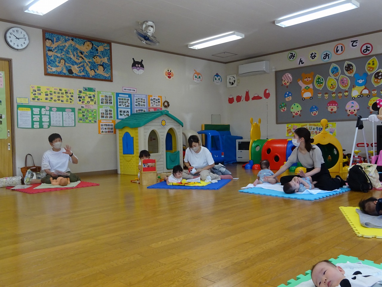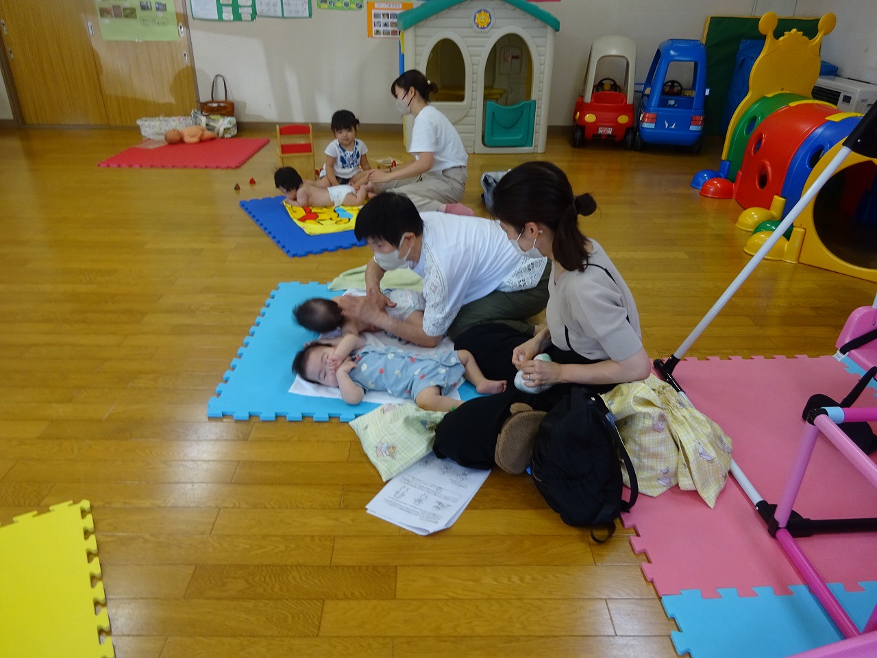 9月29日(金)、北児童館で助産師小林英子さんによるミニ講座「ベビーマッサージ」がおこなわれ、8組の親子が参加しました。 双子の赤ちゃんの参加もあり、初めての方や続けて参加の方、上の子がいる方と色々な皆さんとの交流も楽しめました。 気持ちよくて途中で眠ってしまう赤ちゃんもおり、みんなで寝顔をみて「かわいい〜」というなど、癒しのひとときとなりました。