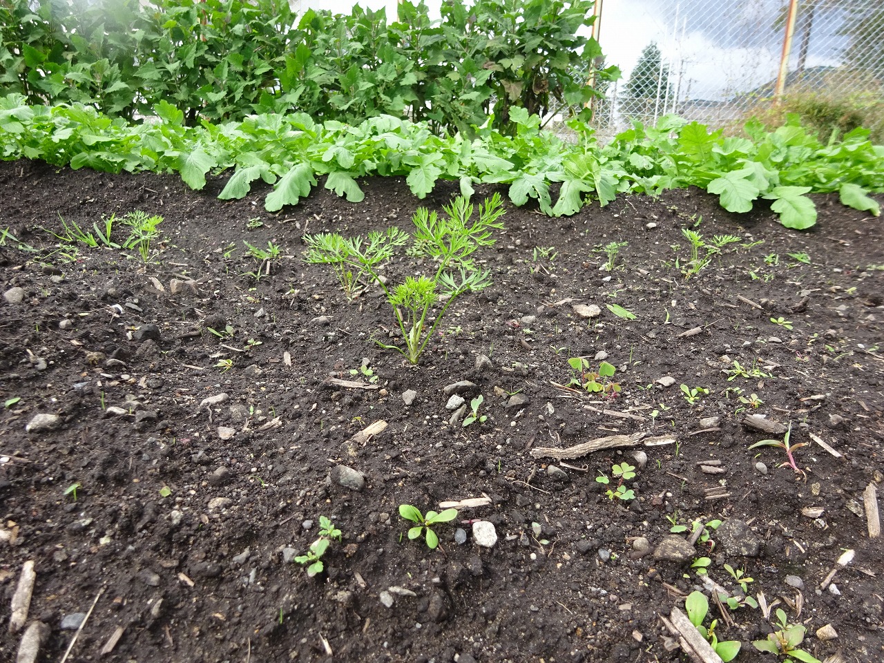10月10日(火)、農園デーができなかったので、職員で草取りにいってきました。 先週より大きくなった人参と大根の葉っぱ。大根はの葉はおいしいらしく、虫が食べているところもあったので、虫退治もしてきました。 土の中で日に日に大きくなっているんでしょうね。