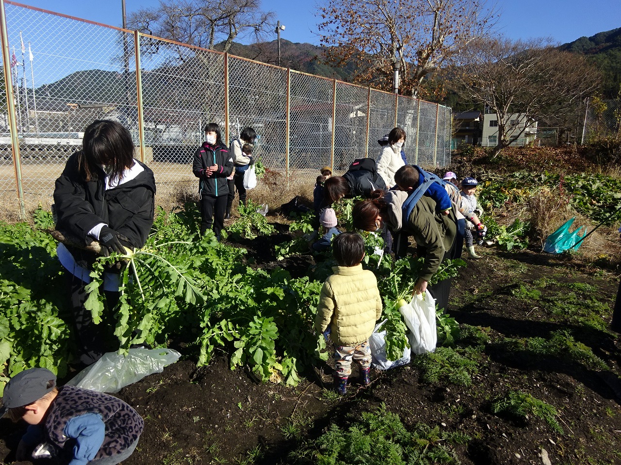 春、夏、秋を越えて大きくなったヤーコン、間引き以来毎週収穫を楽しんだ大根、スポスポ抜けるのが楽しかった人参…それぞれの親子がこれまでの農園活動を振り返りながら最後の収穫を楽しんでいました。