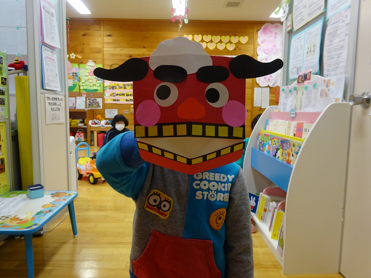 もういくつ寝るとお正月…ということで、園児さんの間でもブームになっているししまいを製作しました。