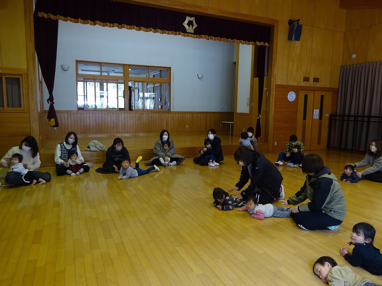 3月21日(木)馬瀬子育て支援センター、北児童館とコラボで3回目のリトミックをおこないました。 3回目は馬瀬での開催でしたが、13組の親子が参加してくださり、雪の舞う寒い中でもたくさん体を動かしてリトミックを楽しむことができました。今回は、エッグマラカスを持ってステージの上で「おもちゃのチャチャチャ」を演奏する場面もあり、年度末らしくそれぞれのお子さんの成長が感じられるひとときとなりました。 講師の淑恵先生の話に深く頷く方も多く、子育ての楽しさや大変さも共有できたようでした。